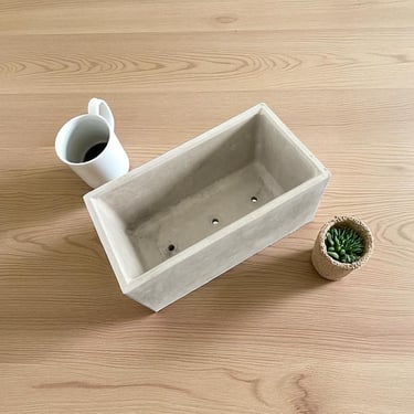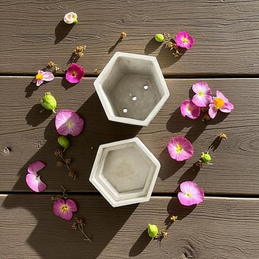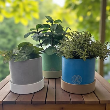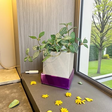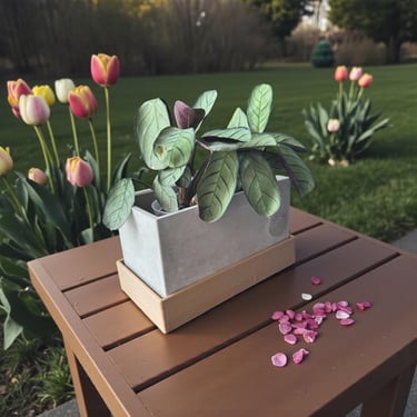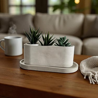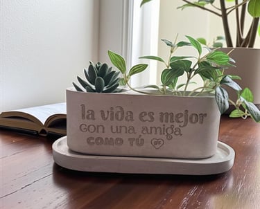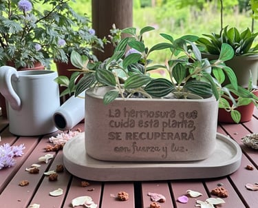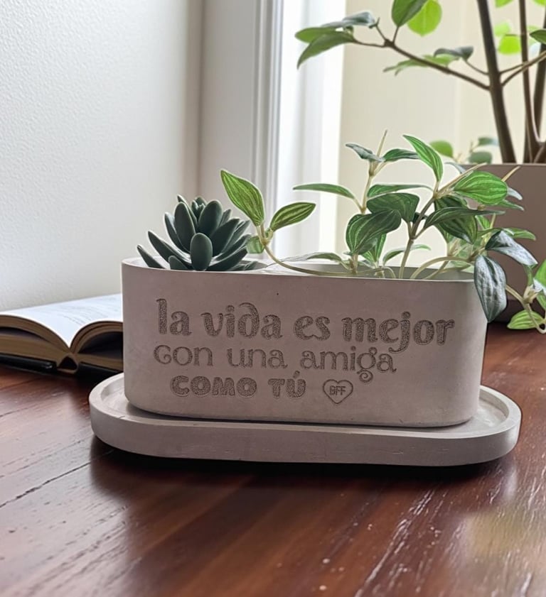 Nuestro producto estrella son las macetas de concreto, piezas elegantes, sobrias y duraderas que pueden personalizarse con mensajes grabados con láser.